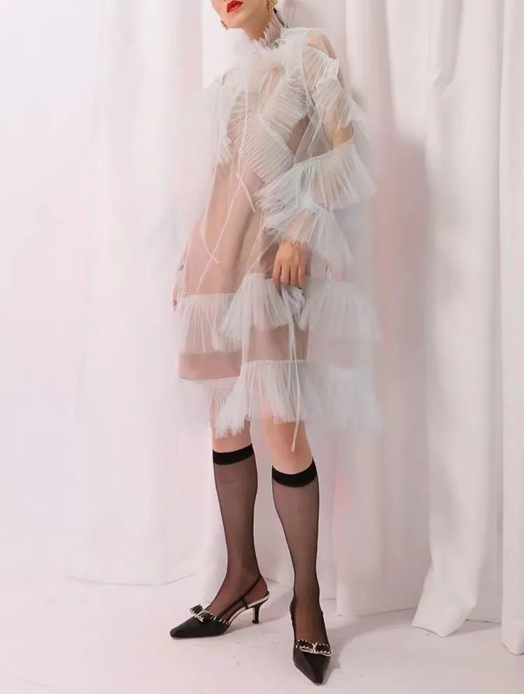 人鱼感的亮点和可塑性本身就是极高的,也是许多女星出席活动、节目等不易出错的吸睛搭法,那人鱼感是如何被女明星们所诠释的呢? 蓝色代表着海洋,加上亮片,显得波光粼粼,犹如美人鱼身上的鳞片。迪丽热巴与陈小纭在头部也加了款式简单的饰品,隐约透露细节的精致,秒变人鱼公主。▼02 人鱼感,无尽回味的细腻