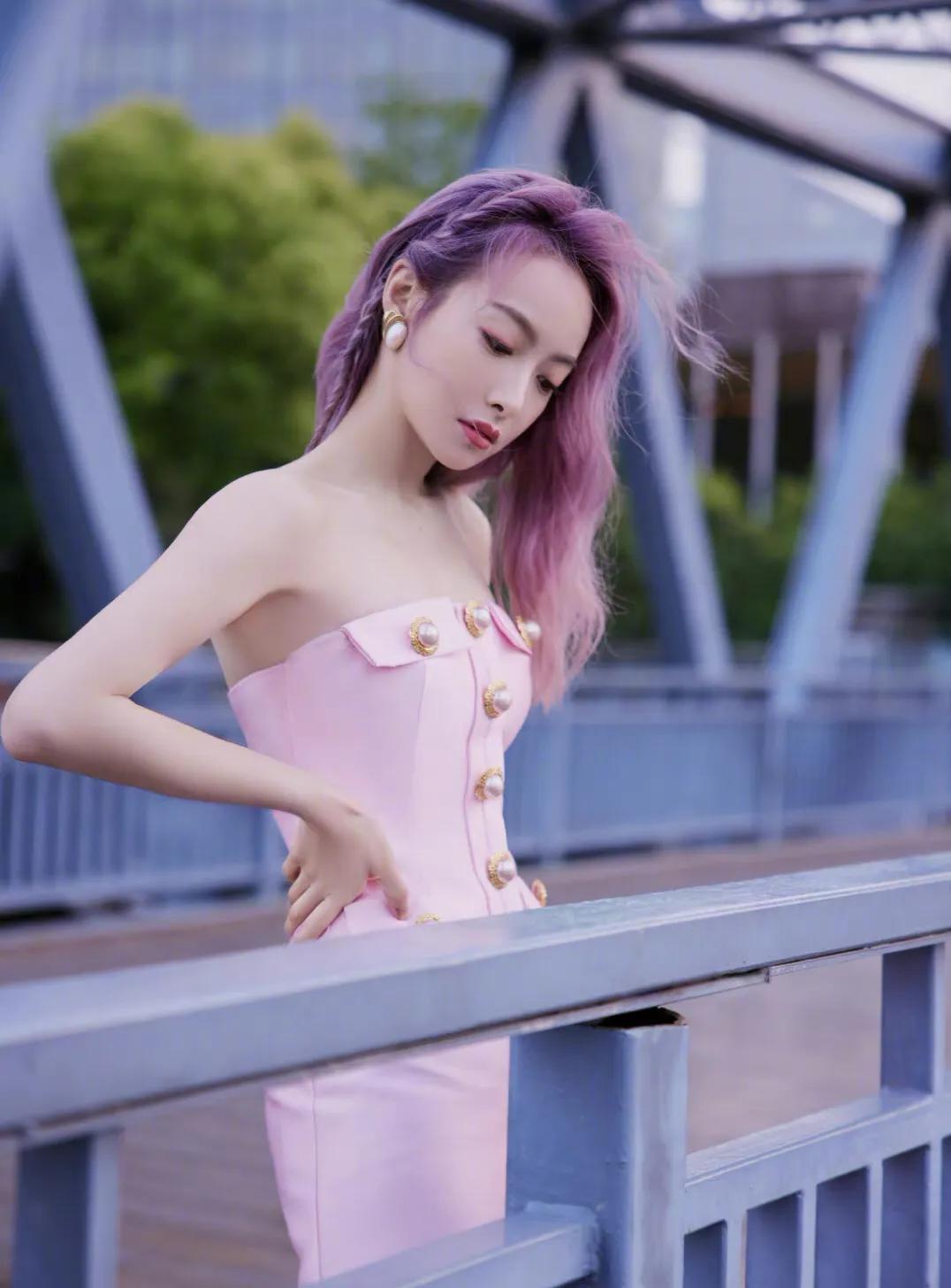 李冰冰出席活动生图,穿一条樱花粉人鱼裙嫩回18岁