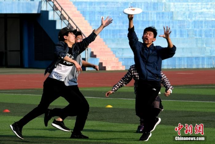 资料图:学生组队进行极限飞盘比赛。 中新社记者 王东明 摄