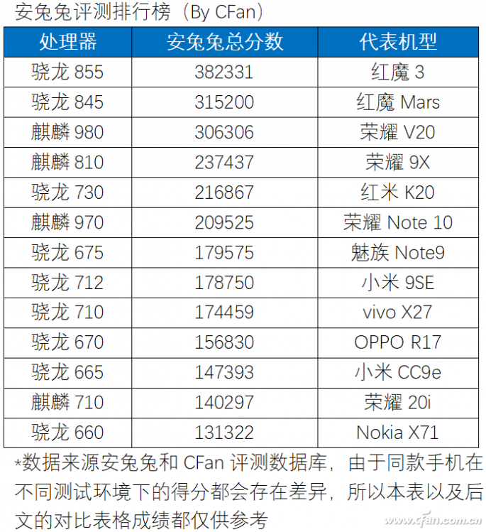 为了便于大家比较,笔者整理了在售Android手机处理器在安兔兔跑分中的TOP10以及它们的具体分数,感兴趣的朋友不妨和自己的或打算入手的手机对比一番。