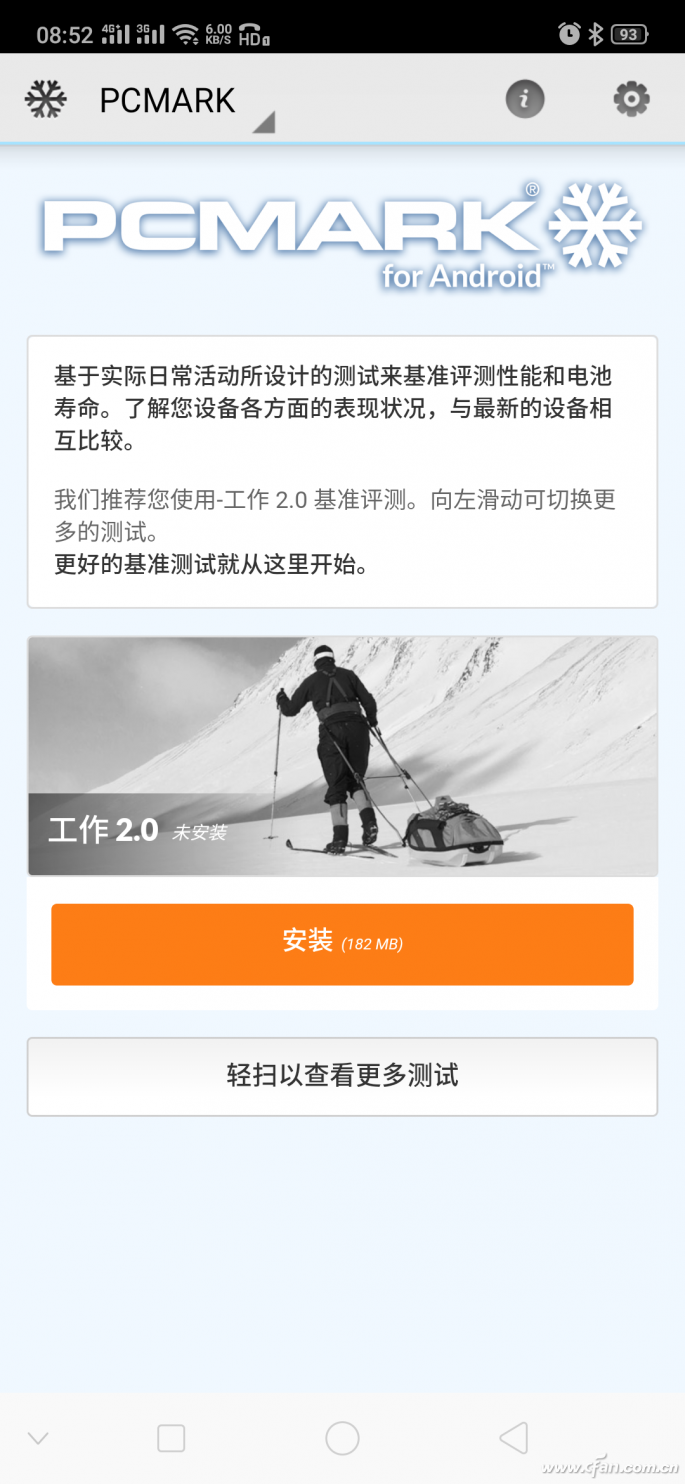 没错,PCMark也是来自Futuremark,其目前主打的测试项目为“工作2.0”(需要下载数据包),包含网页浏览、视频编辑、编辑文档、图片编辑和数据操作几个部分,可以充分调用手机软硬件的资源,CPU和GPU绝对性能的权重有所降低,所以可以更加真实地反映一款手机在日常办公中的潜力。