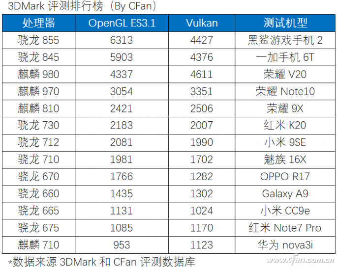 从对比来看,麒麟家族处理器的GPU在OpenGL ES3.1 API接口下的性能要普遍弱于同级别的骁龙家族,但在Vulkan API接口下的性能则非常抢眼,比较意外的是作为新品的骁龙675,其GPU性能甚至还不如骁龙660。可见,如果你更喜欢玩游戏,主流价位还是搭载骁龙7系的手机更值得选。