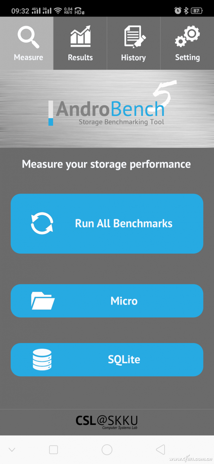 AndroBench是一款容量很小却很强大的闪存性能基准测试软件,在手机安装后我们只需点击“Run ALL Benchmarks”按钮,等待1分钟左右就能测试完毕。这款APP的测试项目包含顺序读写、随机(4K)读写和数据库性能,读写测试的单位为MB/s,数字越高越好,而数据库测试单位为s,数字越低越好。