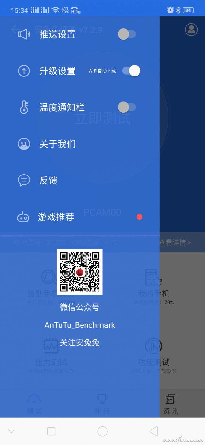 安兔兔评测提供了鉴别手机真伪、压力测试和功能测试(电池耗损、屏幕坏点等)等功能,但其最为核心的还是对手机综合性能的考量,点击APP界面上方的“立即测试”,待下载安兔兔3D测试资源后就能进行跑分了。