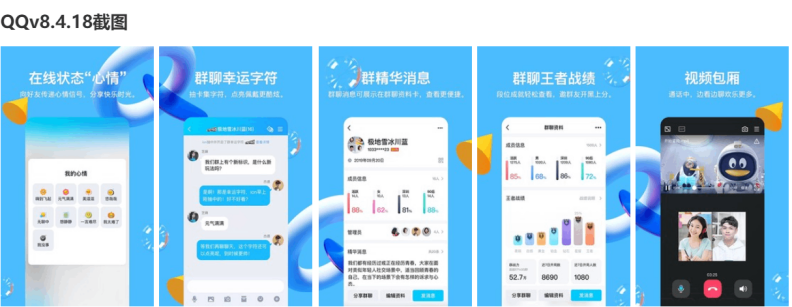 在线状态新增“我的心情”,向好友传递心情信号,分享快乐时光;群聊新增字符,抽卡集字符,点亮佩戴更酷炫;群聊消息可多选设为群精华,并展示在群聊资料卡,查看更便捷;群聊新增王者战绩,段位成就轻松查看,邀群友开黑上分。(豌豆荚上显示的QQ历史版本)