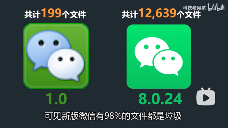 (B站UP主科技老男孩《逆向工程微信安装包,11年膨胀575倍到底更新了啥?》)