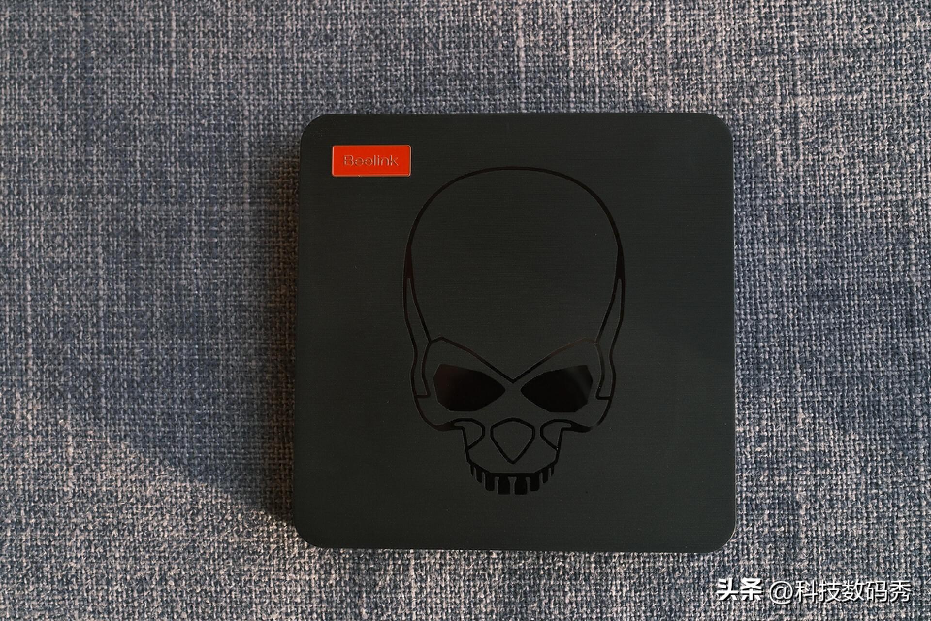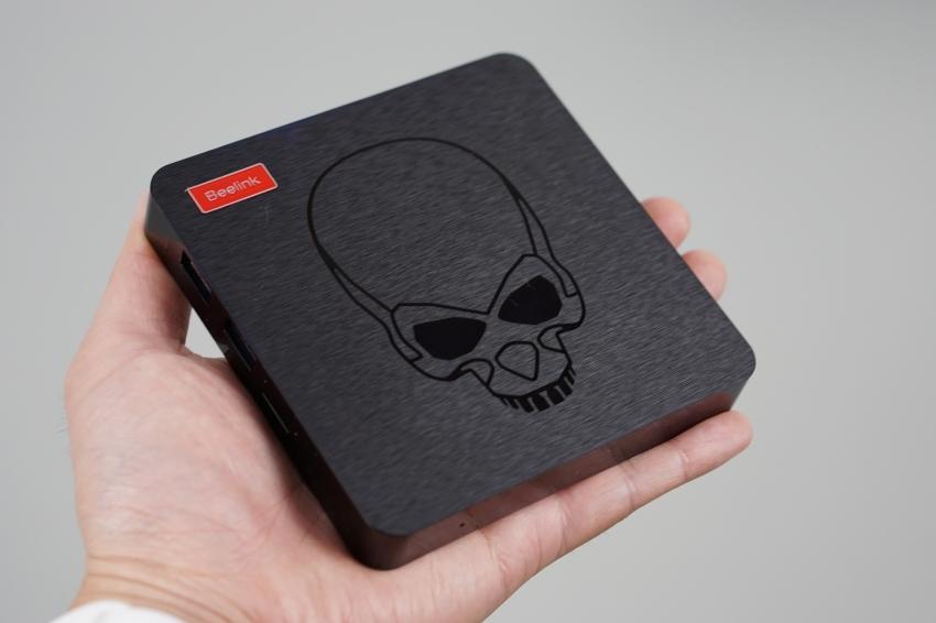 产品依然带了骷髅头的LOGO以及灯光效果,当点亮电源后,Beelink骷髅头的两只眼睛就会亮起深绿色灯光。
