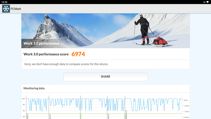 PCMark安卓端的Work3.0测试的分数则是6,974,与最新的中低端手机相当,处理流媒体播放任务完全不在话下。