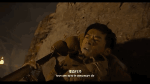 而在呈现这段打斗戏时,《长津湖》运用了晃动的跟拍镜头,多角度机位拍摄,剪辑凌厉,节奏紧凑,让人窒息。观众大气都不敢喘,深刻体会到了战争的难捱与残酷。