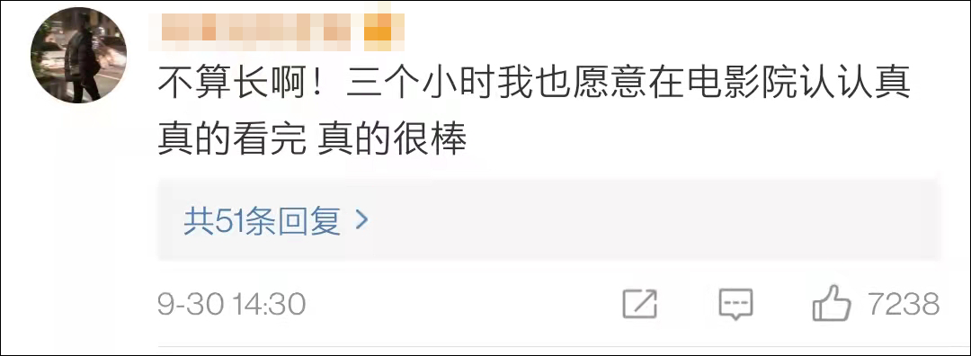 一些网友认为3个小时不算长,“看的时候真的让人沉浸在其中了,不觉时间长了。”