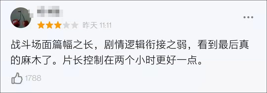 然而也有一些电影博主和网友觉得3小时完全没必要,“对观众非常不友好”。