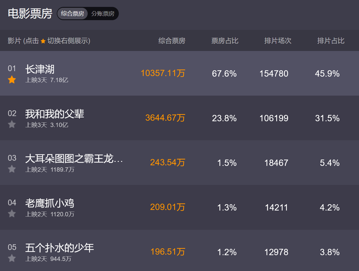而在上映第三天,《长津湖》依然势头强劲。根据猫眼专业版实时数据,截至2日上午9点30分,《长津湖》的总票房已经达到了7.18亿,而它的排片占比和场均上座人次,在国庆档电影中都是遥遥领先。