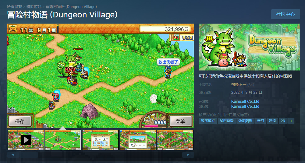 手游玩得多的差友看画面就知道,这游戏叫做《 冒险村物语 》,是开罗游戏出版发行的一款模拟经营类游戏。
