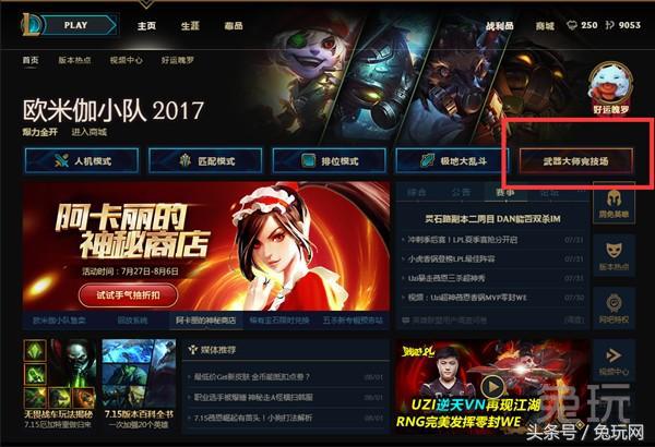 武器大师竞技场相信大家都并不陌生。它为大家提供了获取诸多限定奖励的方式,且每月还能领取免费的入场印记。领取方式非常简单,首先点击客户端右方的“武器大师竞技场”按钮。