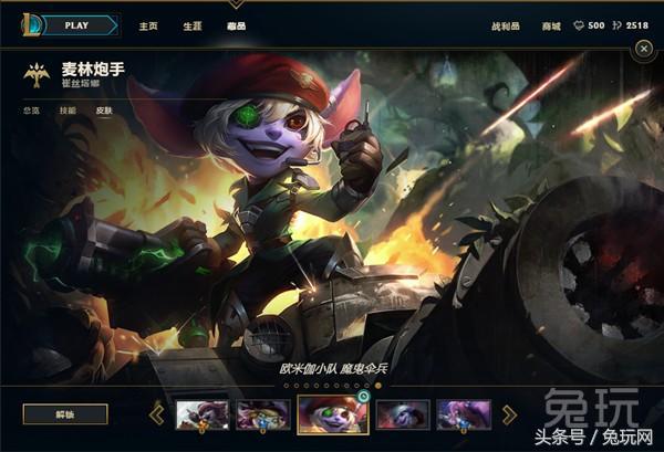 登录与选区后,选择四款皮肤中你喜欢的一款(这里以小炮为例),点击对应的圆圈。