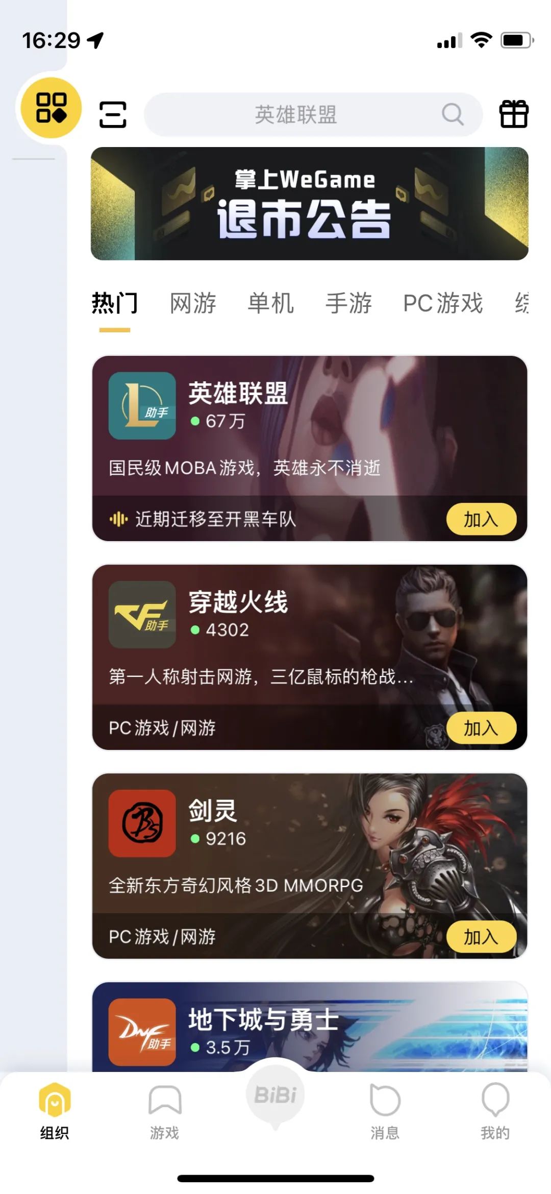 而如今再打开掌上WeGame,APP发行时的那些商店、资讯、直播页面早已不见踪影,取而代之的是各式各样的“组织”,算是社区的变相说法。