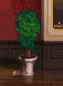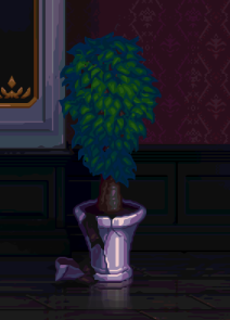 右侧房间最右侧雕像(小心不要打到盆栽)