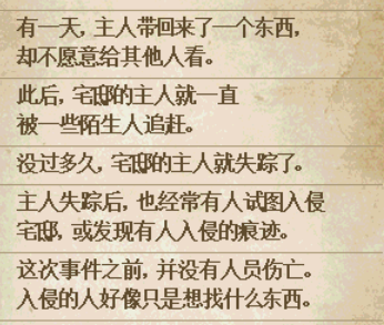 也就是说很可能府邸主人带回的东西仍旧留在府邸中