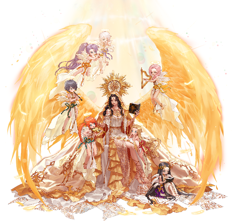 根据技能描述,是7名小天使,可在整个三觉动画中,只能明显的看到3名小天使,那么剩下的4名去哪里了?通过PS逐帧查看,也没找到在哪里,不过在文件包里却有素材,那么就一并展示出来吧:
