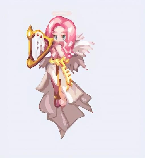 粉红色头发的小天使,拿的是竖琴;