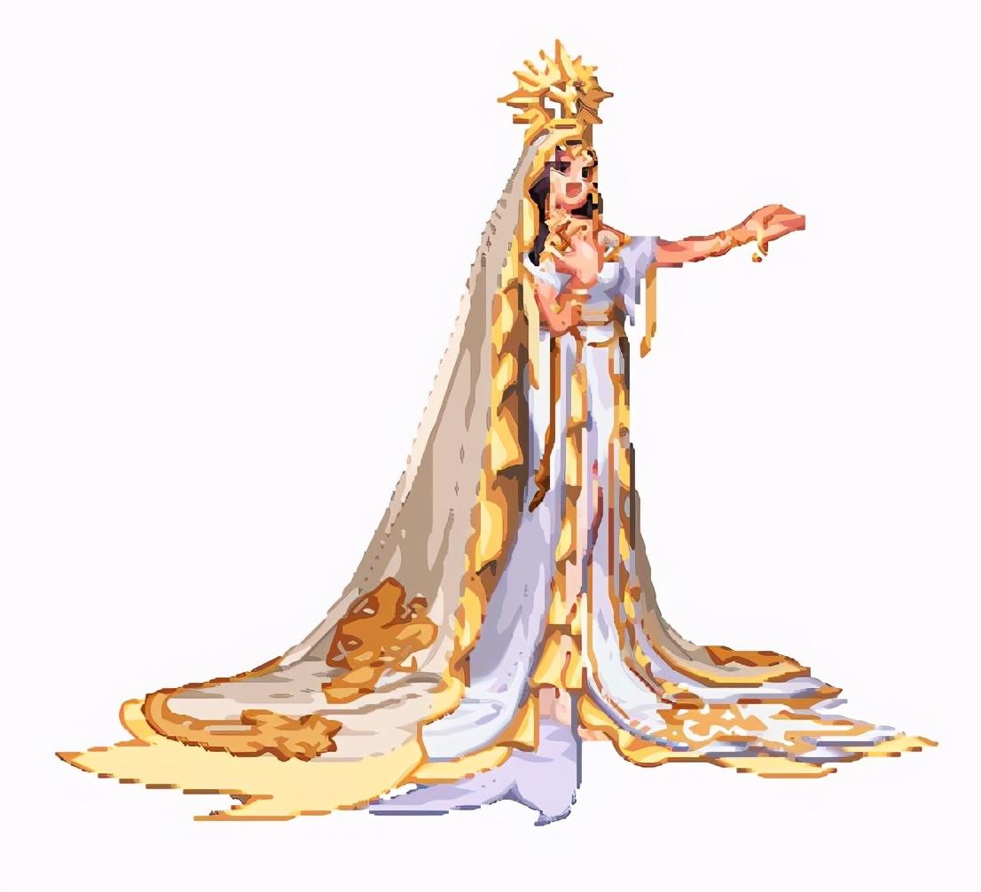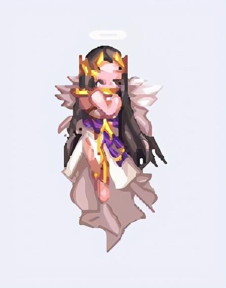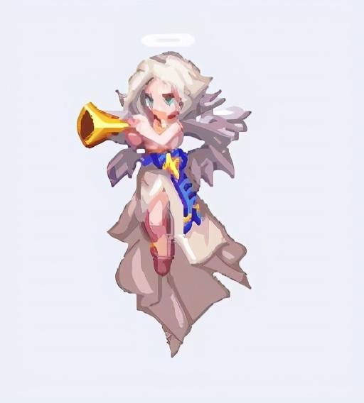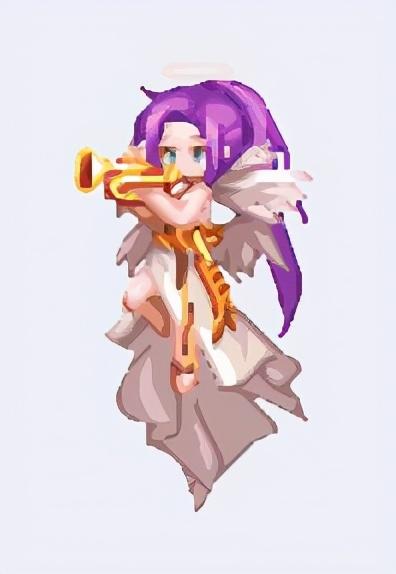 这是动画中最上面的那个,由于本身像素就低,放大300%以后是这个样子,不过也能看出大致轮廓,拿的是里拉琴,关于这个琴后续会单独开篇介绍炽天使三觉的背景故事;