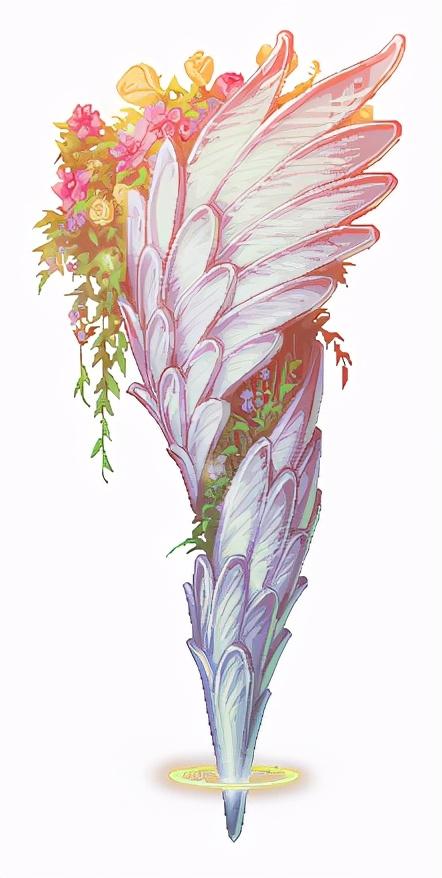 从天而降时的背部翅膀,可惜没有做出羽毛的纹理,不过也不错了,毕竟在动画演示中,有一道光照下来,就掩盖了翅膀,不做纹理也说的过去;