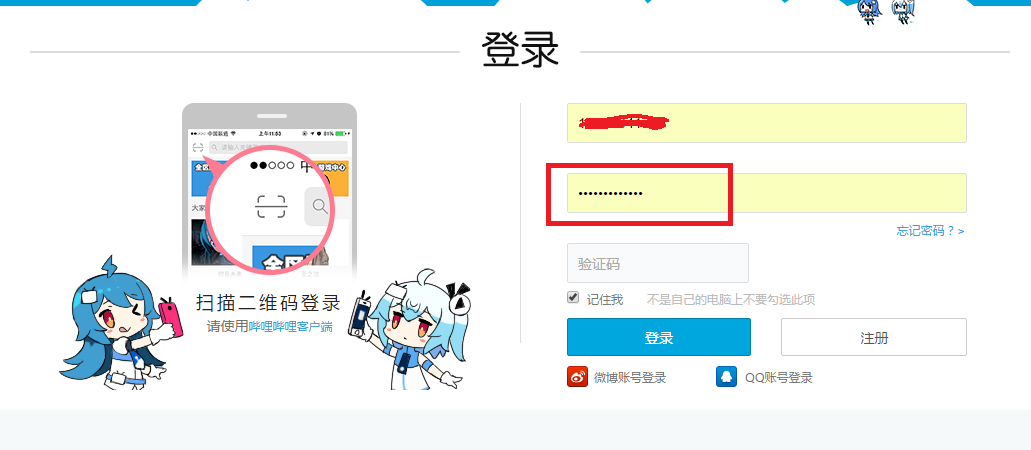 我们以哔哩哔哩为例,当然这不是我的密码,呵呵!