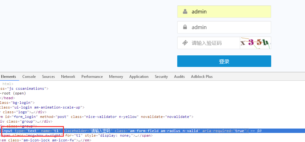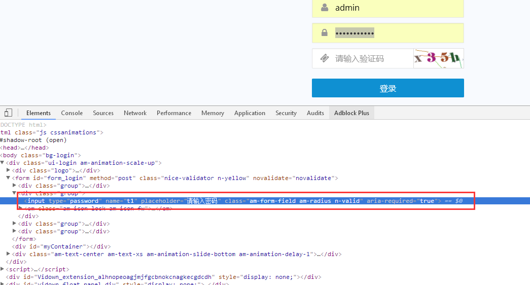 注意上图红框选中的位置,这时候我们只需要将<input type="password" name="t1" placeholder="请输入密码" class="06df-f95e-c4de-a7a4 am-form-field am-radius n-valid" aria-required="true">这段代码里的password改为text,然后你会惊奇的发现,星号隐藏的内容可以看到是什么了。