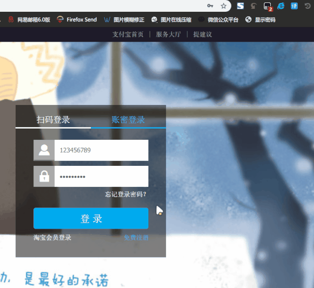 在出现有星号密码的网页,直接点击刚才创建的显示密码书签 ,然后就会发现密码神奇的显示出来了