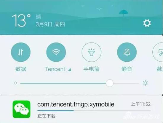 另外,点击试玩后,将自动进入下载。可以在下拉菜单的进程中查询下载 的情况(不同安卓手机打开的进程管理的方式不同)。