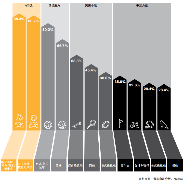 根据2019年普华永道体育行业调查报告显示,电子竞技占据十大最具收入增长潜力的体育项目的前两名。