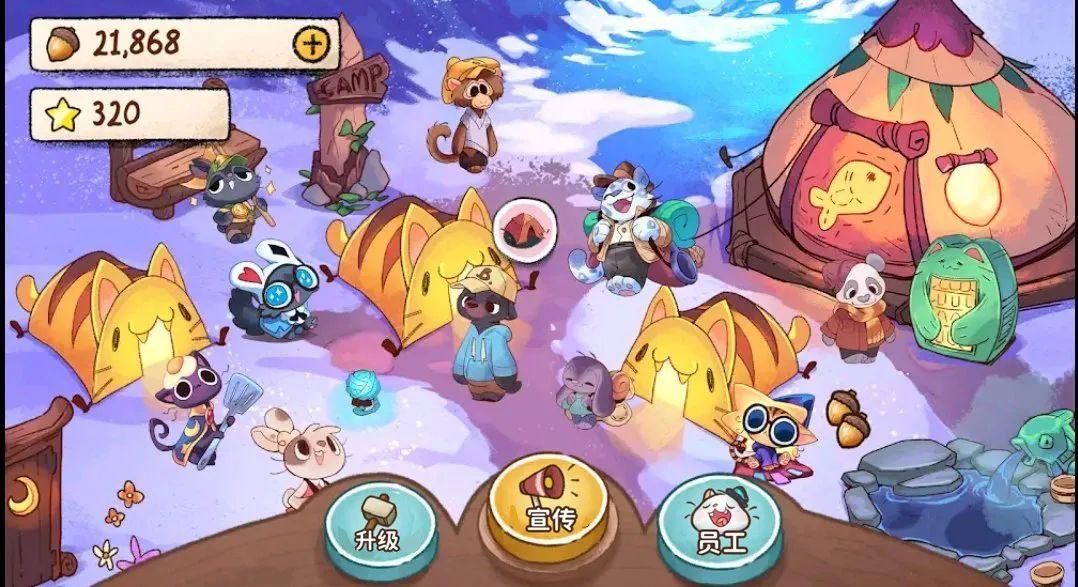 《篝火猫咪咖啡馆》用有点美漫的风格,打造一个如梦似幻的营地,而员工和顾客们是热衷于一展歌喉的鼹鼠、喜欢龙虾的兔子、圆乎乎的猫和酷酷的羊驼。