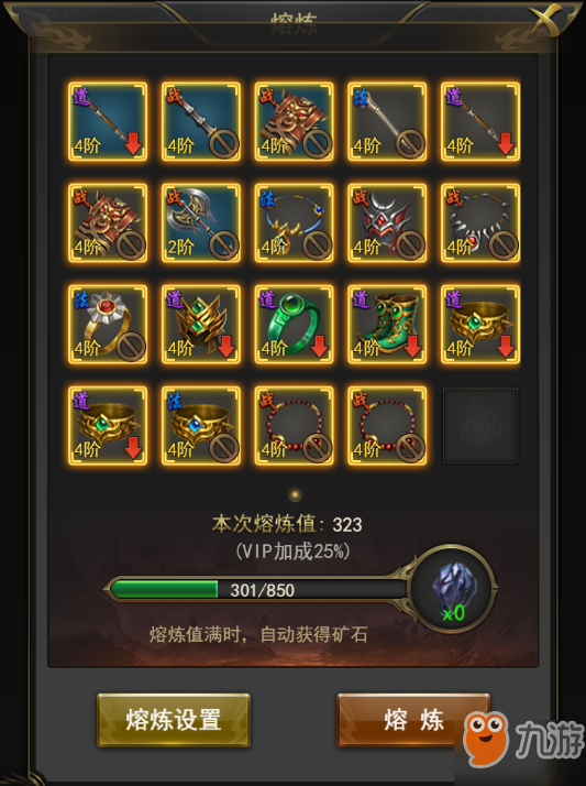 熔炼装备的时候要注意不要把自己的需要的装备给熔炼了哦。