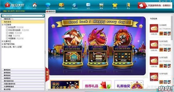进入联众大厅游戏页面,可以看到牌类游戏、麻将游戏、棋类游戏等各类专区。楚汉德州这款游戏,每局时间约40秒,但页面上的赌注之大令人惊讶,电脑为楚汉双方发牌,玩家选择一方下注,压中双倍赢回赌注,输赢的道具虚拟游戏币“万能豆”。