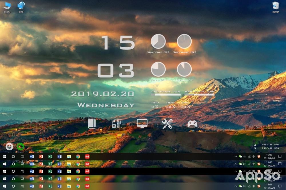 桌面的终极美化方案还是不得不提强大的《Rainmeter》,《Rainmeter》提供高度定制化的桌面小部件。