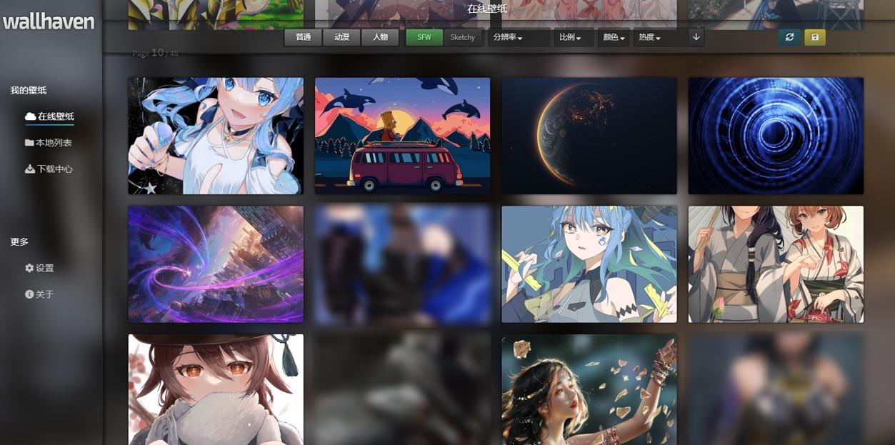 这是一个壁纸软件,自动同步WallHaven中的壁纸,壁纸加载速度快,可以筛选分辨率、按热度查看。你可以直接下载壁纸到本地使用,也可以直接点击切换按钮,就会为你自动设置为壁纸。