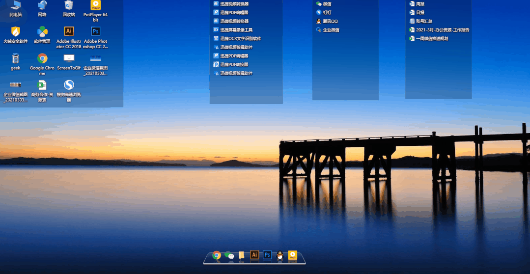 既然桌面上只存放文件,那么常用的应用程序放哪呢?这时候可以像 Mac 一样,为 Windows 装上 Dock 栏。