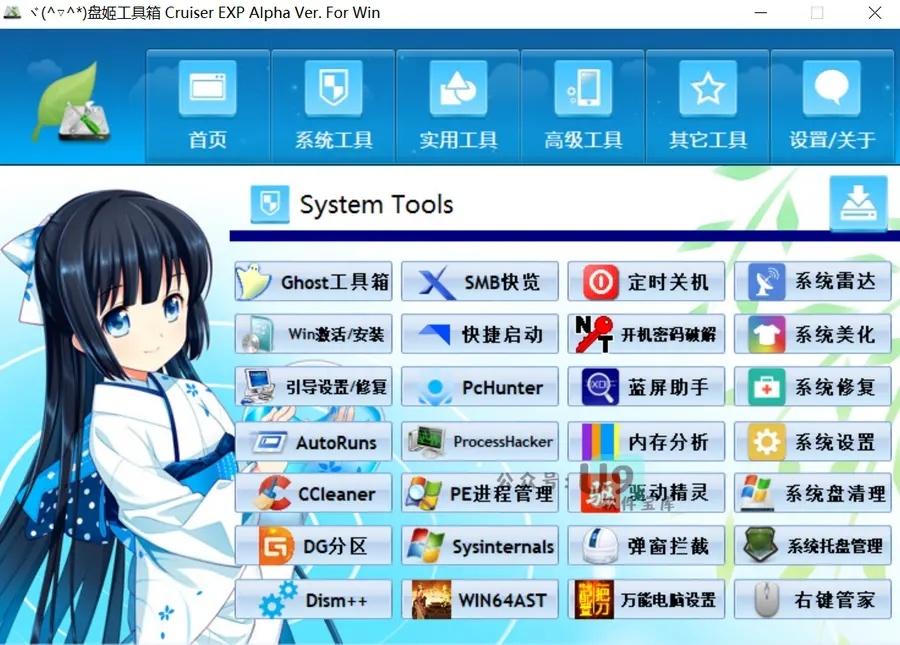 我真的说不完了,大家可以自己看下盘姬工具箱的截图,有需要的朋友可以去自行查看。悄悄告诉你,点击动漫人物会发出清脆的铃声,她会根据硬盘状态换表情。