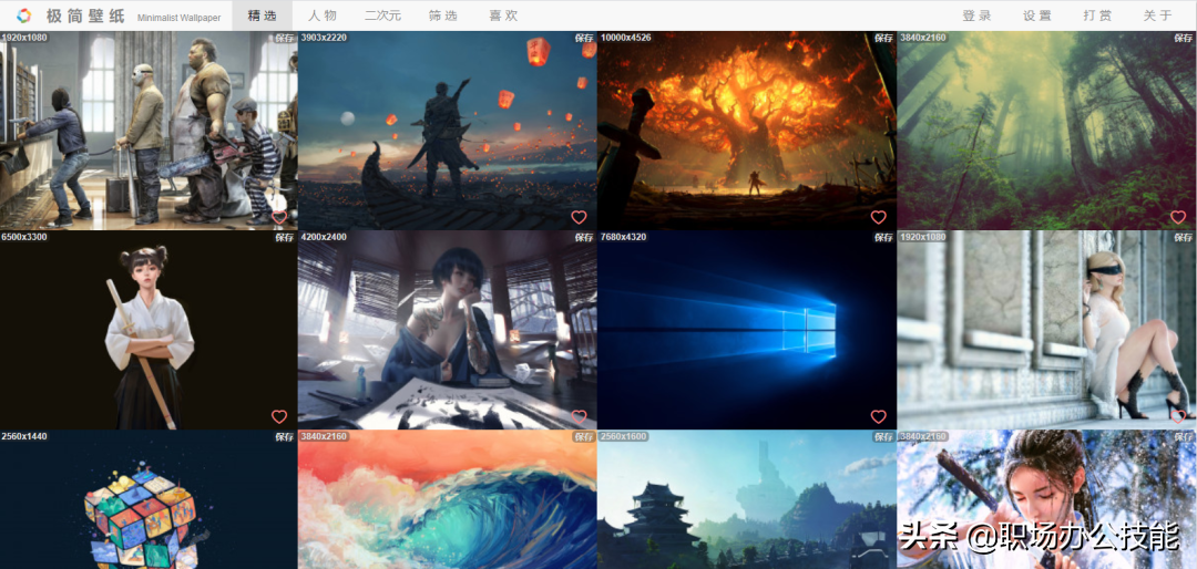 这个网站的壁纸风格偏二次元多一些,更符合年轻人的审美,并且壁纸的分辨率都很高,一般都在1080P以上,甚至有8K,免费无限制下载。