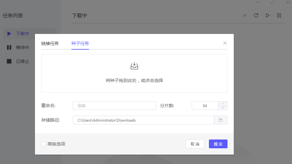 它支持免费下载HTTP、FTP、BT种子,以及各种网盘内容,支持批量下载,设置不限速,几乎可以秒完成下载任务,最多可以同时下载10个任务。
