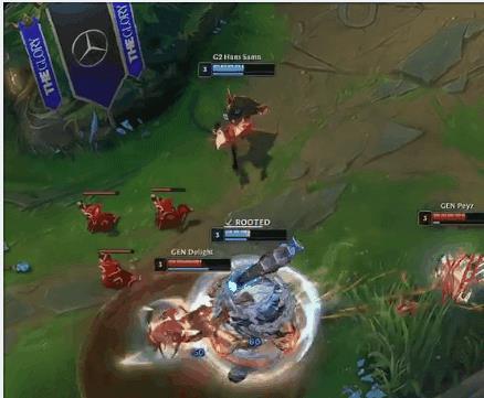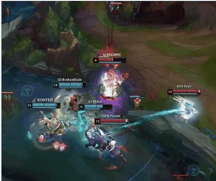 接下来的6分,Peanut的芮尔支援下路,三打二配合Delight的洛进行控制,帮助Peyz的霞击杀了Mikyx的泰坦。GEN迎来了反击的机会。