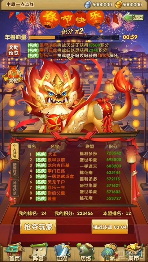 欢乐无比的新春佳节,福利满满的庆典狂欢,《大掌门2》“新春庆典 开服狂欢”火爆开启,更有“登录即享”、“限时折扣”、“充值奖励”等等活动,带给玩家加倍的收获。快来游戏中领取春节豪礼,度过一个充满收获、惊喜和激情的春节吧!