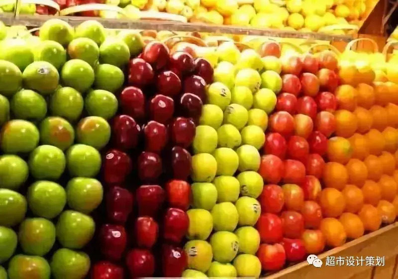 例如在水果门店内靠近通道的地方,陈列黄色、橘黄色、橘红色的水果,更能吸引眼光和人流 ,才有拉动整个水果区销售的可能,这就是色彩陈列的用处。
