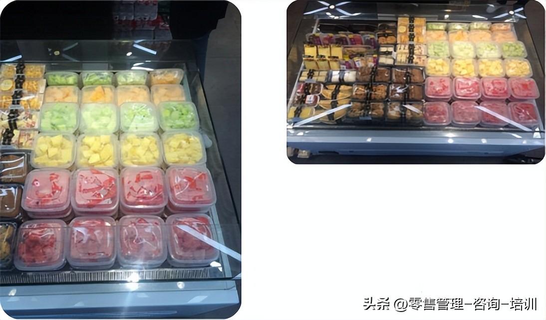 相反更多商家会采用“以新遮旧” ,以更好地体现水果的卖相和品质。表面看上去似乎是增加了损耗,实质上,却会给顾客留下截然不同的印象,让顾客容易看到、容易了解、容易选购,进而达到容易购买,从而使生鲜产品的周转速度加快,产生“样样新鲜”的诉求,进而真正降低损耗、增大利润,树立卖场形象,赢得顾客信赖。