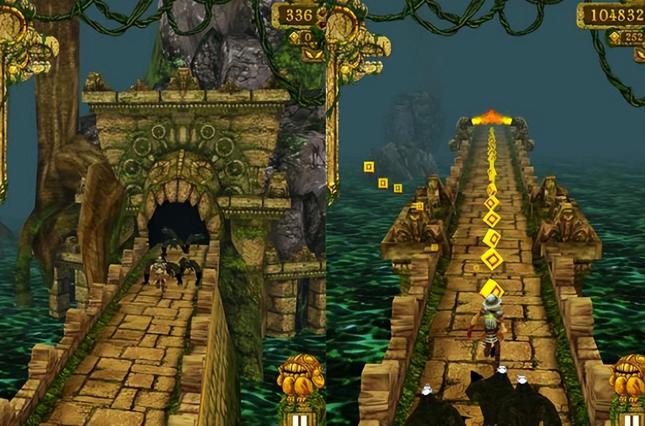 在记忆中,《神庙逃亡》可以称得上是12年手机必备的游戏软件。古朴但危险重重的神庙、暗黑强壮的恐怖猛兽、紧张刺激的配乐、上蹿下跳的关卡、越跑越快的速度……这每一个因素与当时刚推出的手机重力系统相结合,让《神庙逃亡》一举登顶免费与付费手游下载榜双第一,可以说达到了手游界的巅峰。