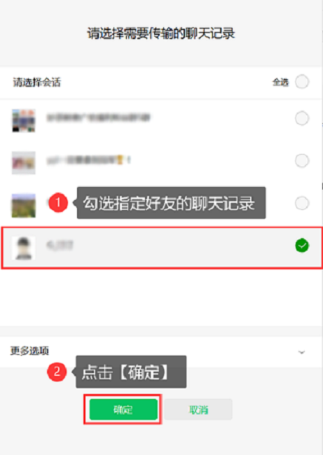 第3步:选择想要恢复的指定好友的聊天记录,然后点击【确定】 ,最后返回手机即可查看到恢复的聊天记录。