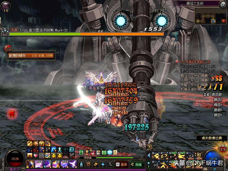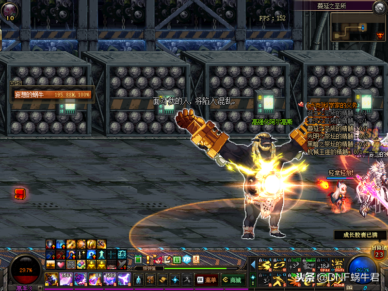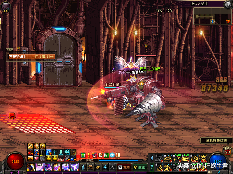 然后蜗牛君要说的是机械王座,这里我们需要注意的是如果我们是辅助需要站在左上角或是房间的角落吃boss套角色罩子这个技能,以免套到主C身上释放不了头顶的技能,影响输出,弄不好不小心释放了会秒杀。其次boss这个技能只会套离他最远的人,其次我们需要注意的是boss给自己套罩子的技能,我们需要最快的速度打掉,不然boss会使我们全部技能“黑掉”全部跑cd,这就比较蛋疼了,还有就是boss会有一个技能会反弹远程技能,这个技能仔细一点是可以看出来的,里鬼时boss身旁会有淡淡的光膜一样的东西,此时我们就需要注意不能释放剑舞,以免被反弹秒杀。