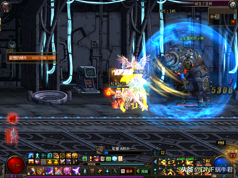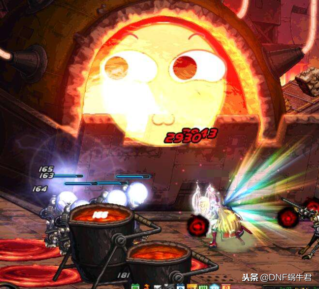 能量左边的怪物是钢铁巨兽,这个怪物我们剑魂只需要在进图之前开上二觉,进图之后直接释放,然后接着就是无脑输出,现在伤害基本是够的,一波带走,如果二觉在之前的房间已经释放掉了,这里如果没有其他职业的控制那么我们就只能怪物先“起飞”放掉一套技能落下来之后再输出,这里需要注意的是这个怪物不能同时控两次,也就是说不能同时有两个控制技能控制怪物,不然怪物会直接进入狂暴模式。