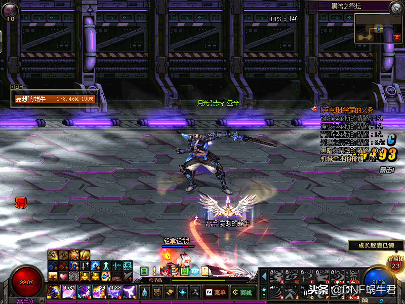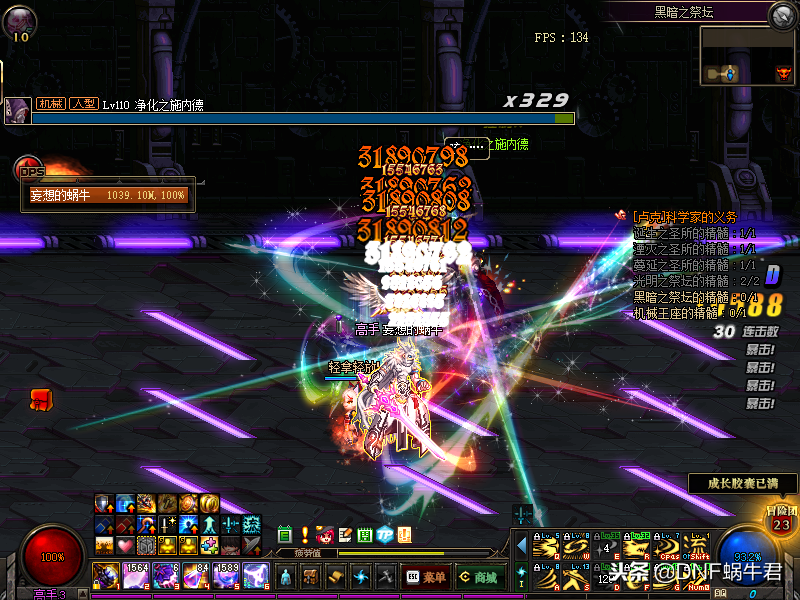 接下来蜗牛君要说的是黑暗之祭坛,因为这个阶段的能量蜗牛君昨天的攻略中已经说过了,这里就不提了,黑暗之祭坛第三个房间是这个地图的第一个绿名怪——净化之施内德,这个怪物我们可以进这个房间之前开上二觉,进房间直接释放,在控制的时间内秒掉,如果没有控制怪物会瞬移和有部分时间的无敌,比较麻烦,所以这个怪比较考验大家的伤害,如果大家队伍的C输出不是很高最好等能量通光之后再进图。