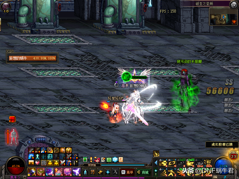 下一个地图是力量祭坛,蜗牛君说这个图之前要多说一句,这里需要看一下能量复活没有,这里需要两只队伍的配合,如果慢一点可以让一支队伍去能量;如果打的比较快能量还没复活可以先不用管能量,直接进图打,然后两只队伍谁想打完可以根据另一只队伍地图的进度情况在选择是否需要再打能量。好了,我们接着说力量祭坛,这个地图的第4个房间是绿名怪——憎恶之贝伊尔,我们可以在进房间之前开二觉,然后进图直接释放,一套技能带走,基本难度不是很大,如果二觉的时间没秒掉可以接着释放一绝进行输出,这个怪最好还是控制带走,不然怪物后续的技能会秒杀所有人。